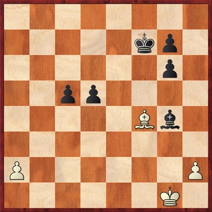 30.Bd6 c4 31.Kf2 d4 32.Be5 d3 33.Ke3 Ke6 34.Bxg7 Bd1 35.Kd2 Ba4 36.Bh6 Kf5 37.h4 Ke4 38.Kc3 Bb5 39.Bd2 Kf3 40.Bg5 Ke2 41.Bd2 Ba4 42.Bg5