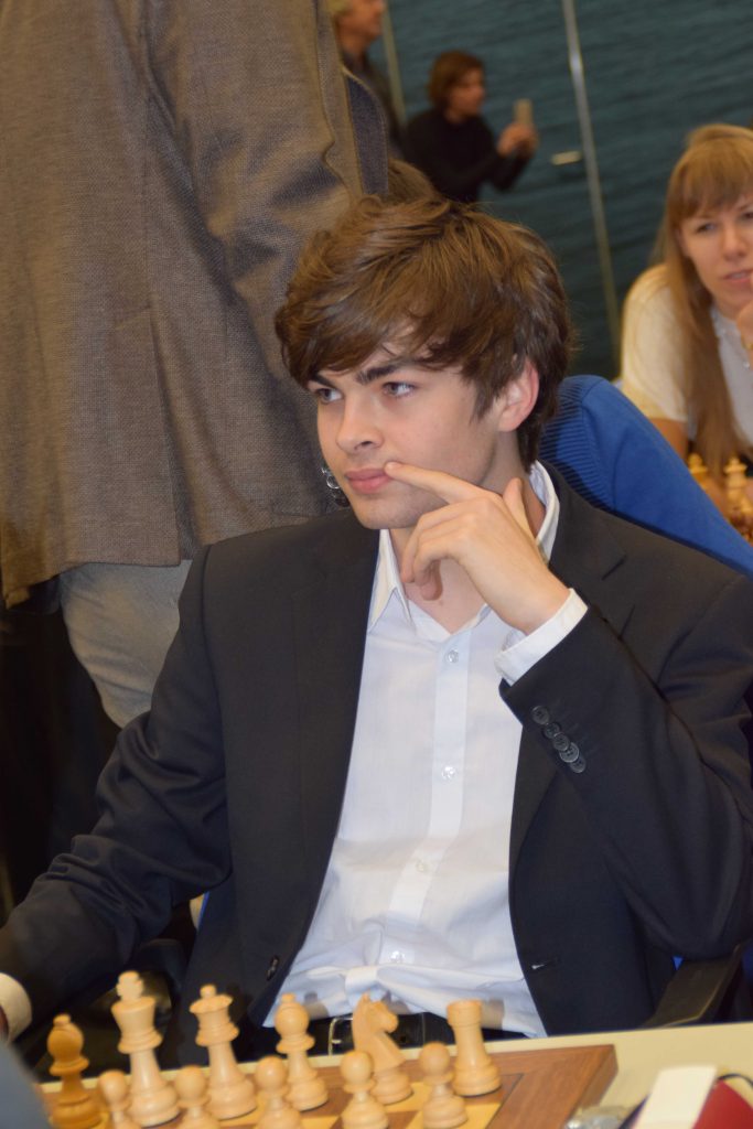 Anish Giri en Peter Svidler spiegelen met elkaar.
